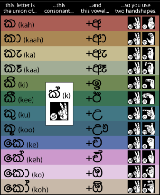in Sinhala is “ක්, අ”, which can be finger-spelled